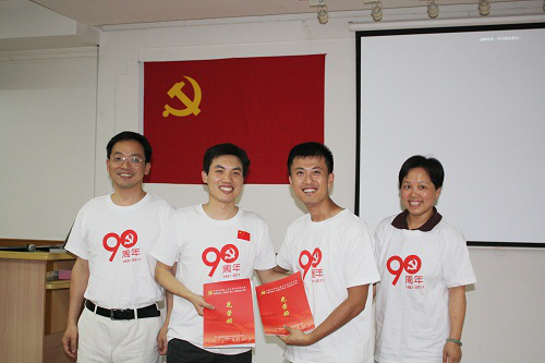 7月1日,是一個難忘而光榮的日子。下午,在莊嚴的國歌聲中,神經所黨委舉行了慶祝中國共產黨成立九十周年表彰大會暨歌詠表演賽。大會首先舉行了重溫入黨誓言的宣誓儀式,100多位黨員在郭愛克老師的帶領下,向是黨旗莊嚴宣誓。會上對創先爭優活動中表現突出的支部和個人進行了表彰,授予職工第二黨支部“中科院上海生科院神經所優秀基層黨組織”稱號,授予郭愛克、楊福林、譚國鶴、何靈杰4位同志“中科院上海生科院神經所優秀共產黨員”稱號,郭老師和譚國鶴兩位同志作了交流發言,以大家很多啟迪和思考。接著,黨委書記王燕同志圍繞獻身、嚴謹、求實和奮進的黨員、2010-2011神經所黨建基本情況、近期與神經所發展有關的重要事件總結介紹三個主題作了工作報告。特別是她在回顧我所第一任所長張香桐先生歷盡艱辛、不屈不撓、富有傳奇的一生時,張先生的淵博學識、遠見卓識、以及嚴于律己、寬以待人、淡泊名利的精神令廣大黨員印象深刻,是廣大科技工作者學習的楷模。王燕書記要求黨組織和廣大黨員要在推進“創新2020”、建設創新型國家和全面實現小康社會中勇于擔負歷史責任,黨建工作要體現時代性、把握規律性、富于創造性,不斷提高黨的建設科學化水平;要進一步發揮黨組織的政治核心、戰斗堡壘作用和共產黨員的先鋒模范作用,努力學習和繼承老一輩科學家的優秀品質和光榮傳統,在加強自主創新、建設創新型國家和中國特色社會主義偉大事業中建功立業。最后,她對各位黨員在神經所建設中的辛勤工作表示感謝和致敬! 之后,神經所舉行了歌詠表演賽,特別邀請了張旭、王以政、羅振革、王佐仁四位研究員、以及四位黨委委員擔任了評委,五個支部的黨員以滿腔的熱情、激昂的歌聲向黨的90華誕獻禮!晚上,全體黨員觀看了電影《建黨偉業》。