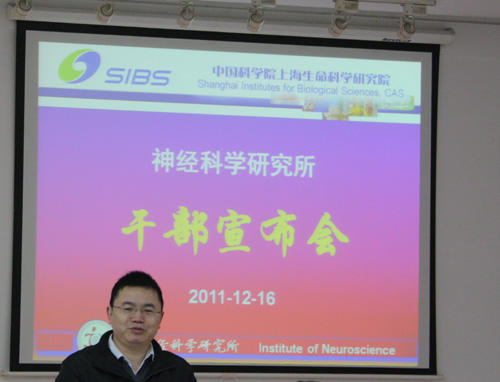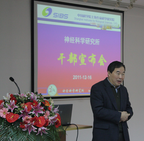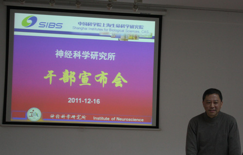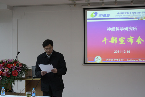 12月16日,上海生科院黨委書記兼副院長張建新出席神經所干部宣布會,宣布王以政研究員擔任神經所副所長,舒友生研究員擔任神經所黨委副書記,王佐仁研究員擔任神經所所長助理。神經所領導班子成員、部分PI及管理人員參加了會議。