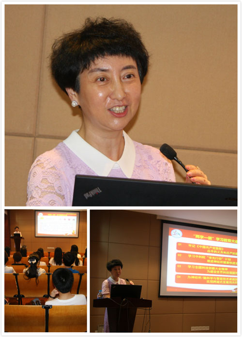 副所長王佐仁研究員以《如何在科研創新中發揮黨員先鋒模范作用》為主題,通過陳述科技創新模范黨員錢學森、李儒新的優秀事跡,倡導正確的科研價值觀和創新精神,引導黨員充分認識科研創新的新形勢,號召大家保持共產黨員先進性,依靠組織,聯系群眾,“頂天立地”地做好科研工作,堅持中國特色的自主創新之路。