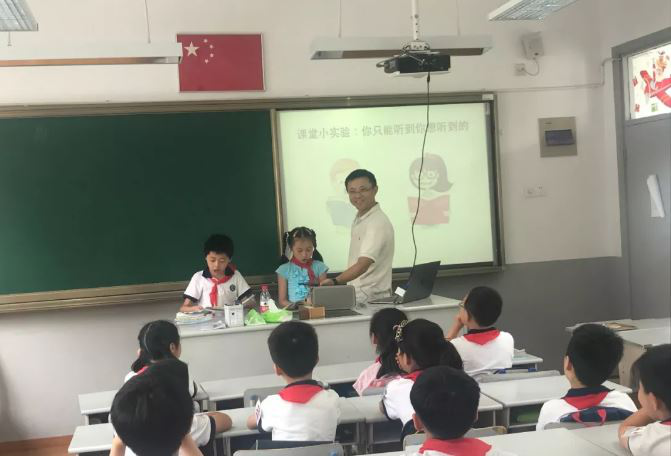 神經所徐寧龍研究員作為二1班徐郎之爸爸,精心準備了大量音頻,視頻資料,為同學們講解了大腦是如何感知聲音的過程,深入淺出的講解,有趣生動的語言,將深奧的科學知識深深地印入了同學們的頭腦中。課堂上,徐叔叔還邀請了2名學生參與實驗。通過實驗更是讓大家意識到了:原來我們耳朵聽到的聲音是有選擇性的,在嘈雜的環境中,大腦會對自己感興趣的聲音進行甄別選擇呢!