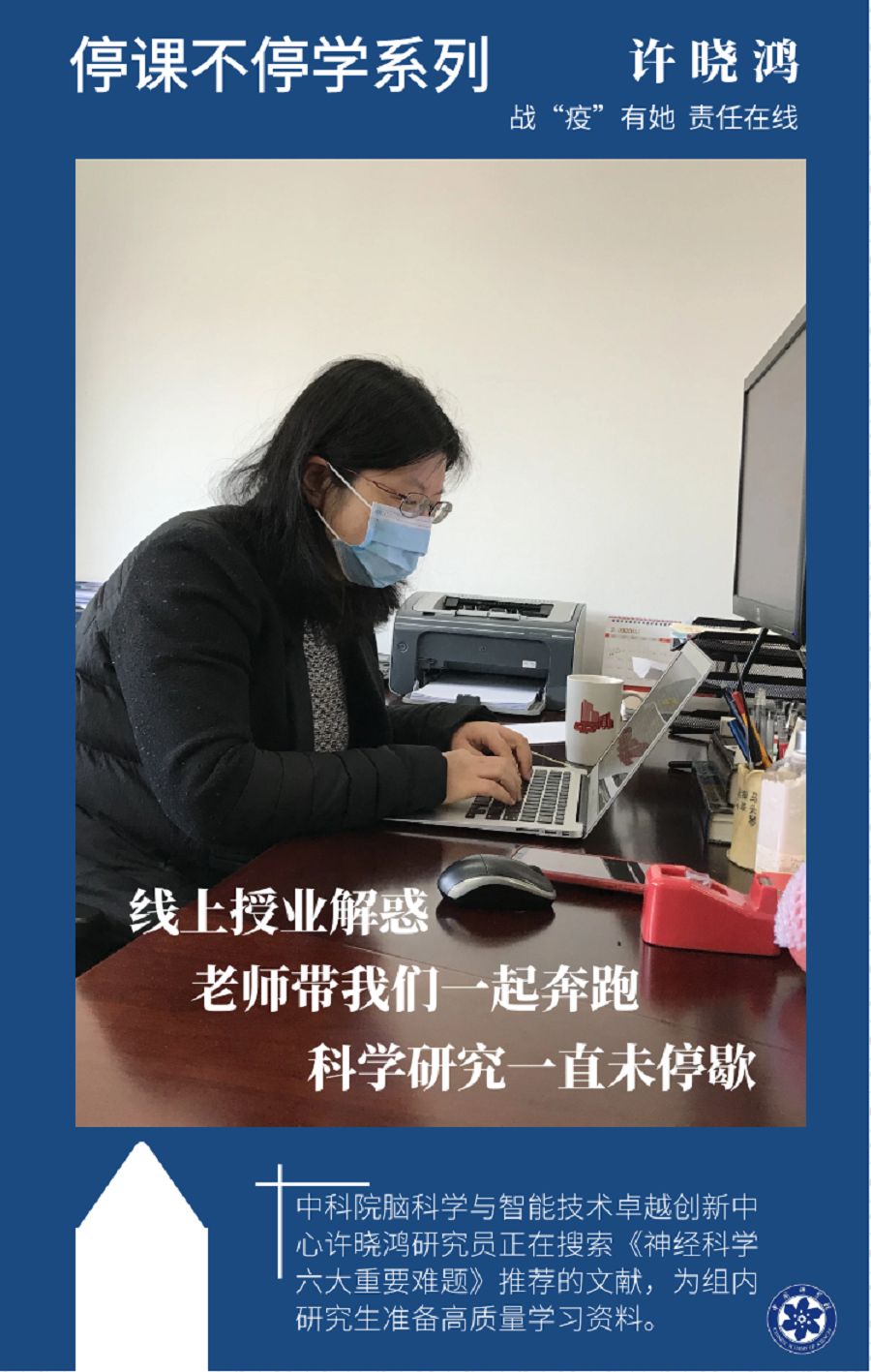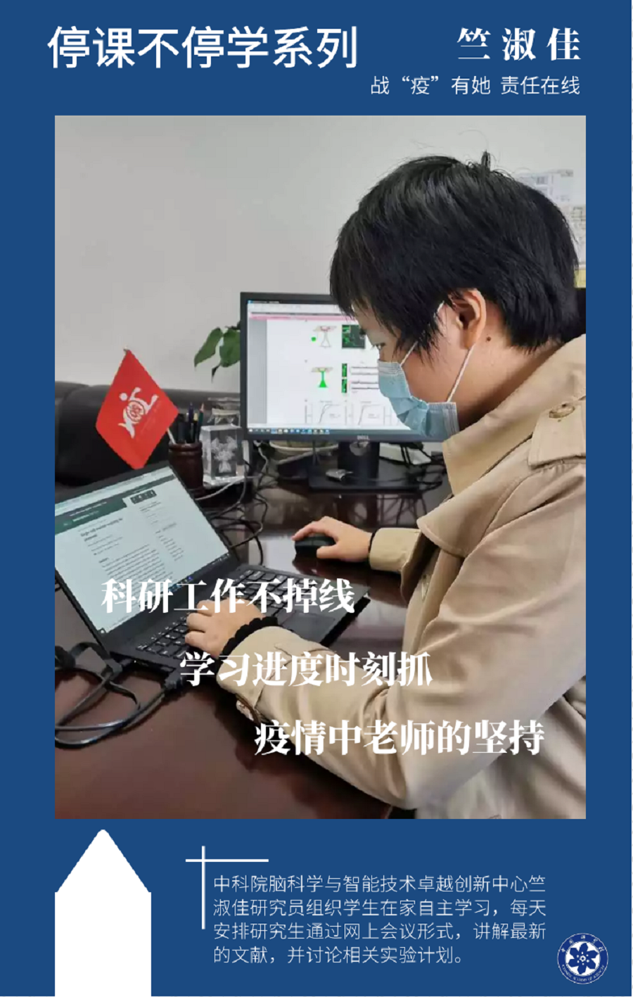 在線展示照片分為兩大類,其中,“戰疫情、我在崗” 主要包括疫情期間堅持在崗或居家工作,科研攻關和支撐保障等場景;“宅生活、展風采” 主要包括宅家生活時,網課助教、居家廚神、生活妙招等家庭場景。“腦智麗人、花式防疫”展示活動充分體現出腦智卓越中心的女職工、女博后們在疫情面前不輕視、不恐慌、認真工作、用心生活的精神風貌,激勵中心女職工、女博后團結一心戰疫情,眾志成城筑防線,譜寫巾幗好生活。