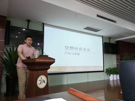 張治宇作了題為“空想社會主義產生與發展”的主題報告,分享了對早期國際水平社會主義發展史的了解和理解,介紹了十六、十八、十九世紀空想社會主義的主要人物與理論,并結合個人的理解認知分析了三個時期社會主義的主要特征與缺陷。