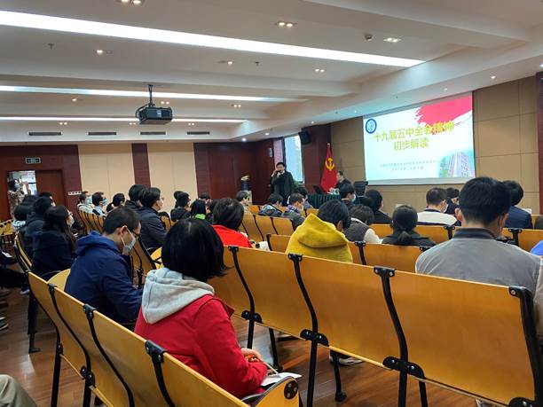 2020年12月2日下午,腦智卓越中心黨委舉辦了黨的十九屆五中全會精神主題宣講會。中心領導班子成員、兩委委員、研究組長、技術與管理部門負責人、黨支部書記、支部委員、黨員、團員等約80余人參加了學習活動。活動由黨委副書記、紀委書記王茂華主持。