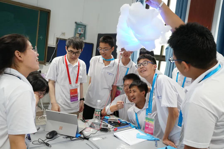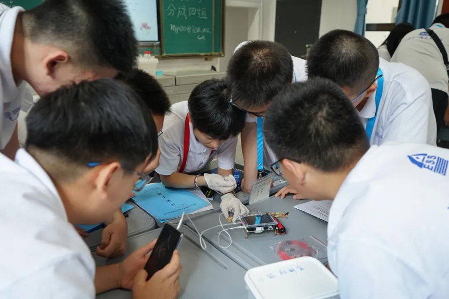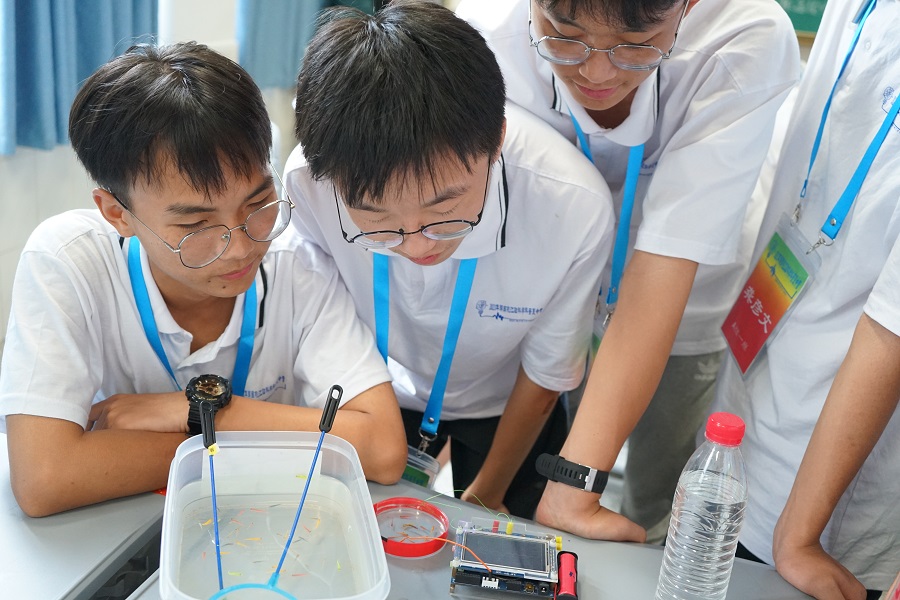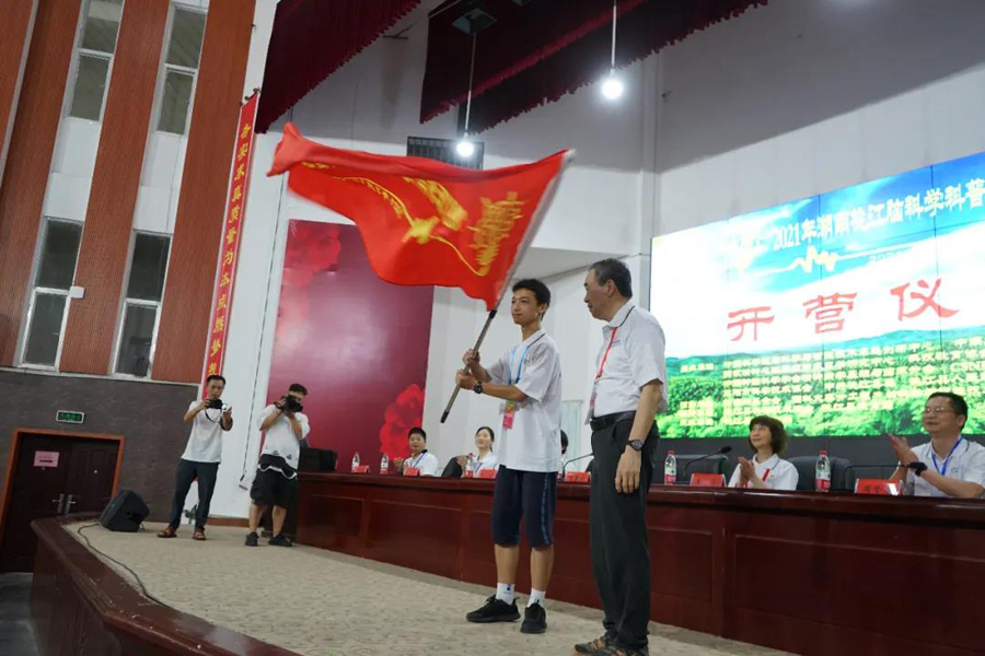 畢營(yíng)儀式上,營(yíng)員代表和志愿者代表分別發(fā)表了感言。桃江一中關(guān)意同學(xué)表示:“這次活動(dòng)讓我們有機(jī)會(huì)與科學(xué)進(jìn)一步近距離的接觸,尤其是教授們一番推心置腹的教誨,為我們點(diǎn)亮了成長(zhǎng)道路上的指路明燈,讓我們對(duì)自己未來(lái)的規(guī)劃越來(lái)越清晰,目標(biāo)越來(lái)越明確,信念也越來(lái)越篤定。這是一個(gè)少年拿云、科技強(qiáng)國(guó)的時(shí)代,一次夏令營(yíng)活動(dòng),只是一個(gè)開(kāi)始,我們的征途是星辰大海,我們的未來(lái)是璀璨星河。”科普志愿者竇艷儂表示:“同學(xué)們每天活力四射,對(duì)科學(xué)實(shí)驗(yàn)充滿了興趣,對(duì)感興趣的問(wèn)題窮追不舍,看到驚奇的實(shí)驗(yàn)現(xiàn)象驚喜不已,讓我深深的感受到了年輕人對(duì)科學(xué)研究的熱情。實(shí)驗(yàn)課余,和同學(xué)們探討實(shí)驗(yàn)心得,貼心的同學(xué)和我說(shuō):‘老師,我即使用了批判的眼光,還是覺(jué)得你們的實(shí)驗(yàn)設(shè)計(jì)的非常好,謝謝你們!’讓我真切的感覺(jué)到了溫暖,堅(jiān)定了要把科普志愿活動(dòng)堅(jiān)持下去的信心。座談會(huì)上年輕的你們談到自己的理想都可以激情澎湃,同學(xué)們心懷夢(mèng)想,能感受到年輕的你們也是心中有火,眼里帶光,也深深的感染了我。”