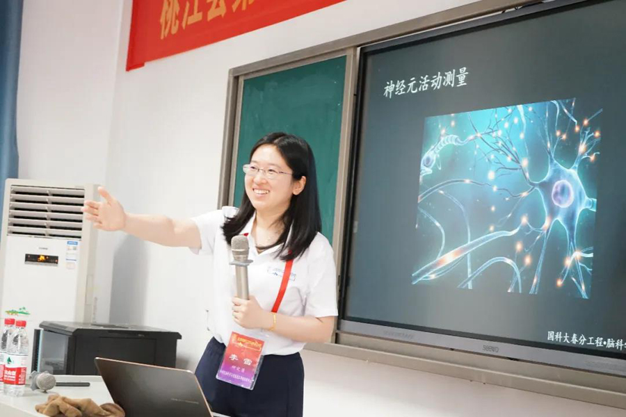 7月17日至19日,在蒲慕明院士的帶領(lǐng)下,中國(guó)科學(xué)院腦科學(xué)與智能技術(shù)卓越創(chuàng)新中心30名科普志愿者,聯(lián)合中南大學(xué)湘雅二醫(yī)院的師生,前往桃江一中開(kāi)展“2021年湖南桃江腦科學(xué)科普夏令營(yíng)”,帶領(lǐng)同學(xué)們探索腦科學(xué)世界、感受腦科學(xué)魅力。在桃江縣委縣政府、縣科協(xié)、縣教育局的組織下,桃江一中、桃花江鎮(zhèn)二中、武潭鎮(zhèn)中學(xué)等37所學(xué)校的244名中學(xué)生,全程參加了為期三天的科普夏令營(yíng)活動(dòng),科技教育協(xié)會(huì)(美國(guó))湖南代表處給予了大力支持,此次活動(dòng)也是中科院研究生踐行國(guó)科大春分工程的一次腦科學(xué)與智能技術(shù)科普行動(dòng)。