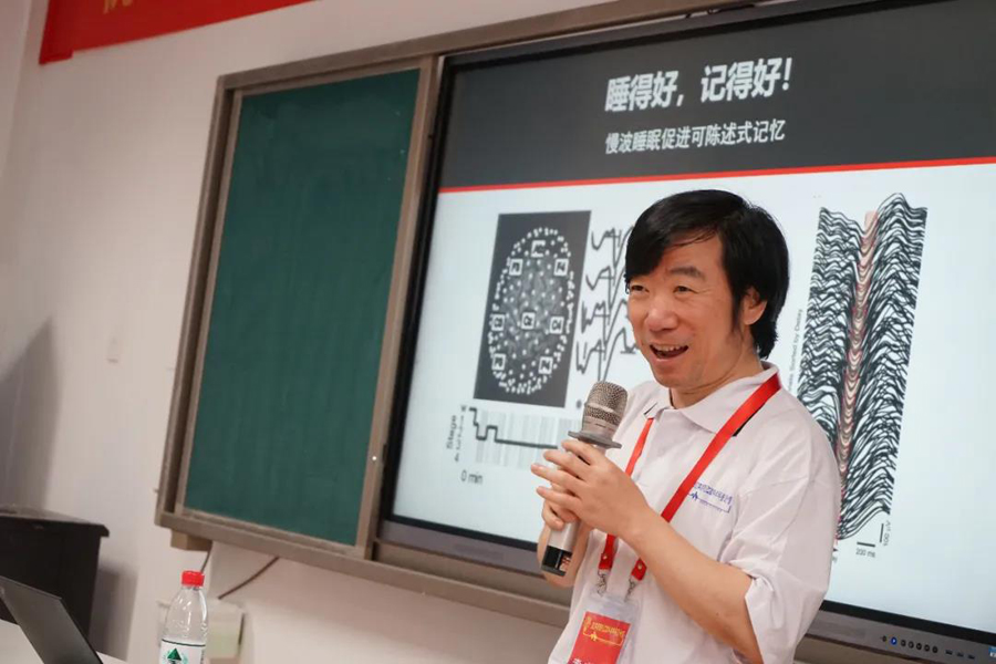 開(kāi)營(yíng)儀式上,中科院腦智卓越中心學(xué)術(shù)主任蒲慕明院士向夏令營(yíng)學(xué)生代表授營(yíng)旗,并為廣大師生上了一堂生動(dòng)的《大腦的可塑性》科普講座,深入淺出地為大家揭示了大腦皮層發(fā)育的機(jī)理,詳細(xì)闡述了“人的聰明才智來(lái)自何處?”。他指出,雖然遺傳基因是構(gòu)建正常神經(jīng)網(wǎng)絡(luò)的必要材料,但形成神經(jīng)網(wǎng)絡(luò)更重要的因素來(lái)自后天的環(huán)境和經(jīng)驗(yàn);他鼓勵(lì)同學(xué)們利用成長(zhǎng)期努力學(xué)習(xí)、刻苦訓(xùn)練,提高自己的智力和認(rèn)知能力。