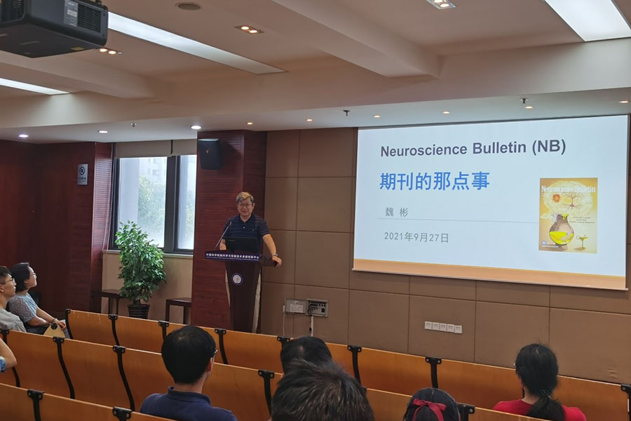 在報告中,魏彬回顧了這份期刊的創(chuàng)刊初心和辦刊歷史,為大家介紹了Neuroscience Bulletin期刊從無到有、到穩(wěn)定發(fā)展、直至成為今天國內(nèi)神經(jīng)科學(xué)領(lǐng)域的重要刊物的歷程,分享了期刊人一路走來經(jīng)歷的波折及其堅持不懈的拼搏努力。隨后,魏彬給大家詳細(xì)介紹了期刊對各類型稿件的要求以及處理稿件的一般流程和規(guī)則,分享了提升稿件被接受的寫作注意事項,對于科研人員提升科研論文寫作具有重要的指導(dǎo)意義。