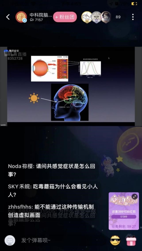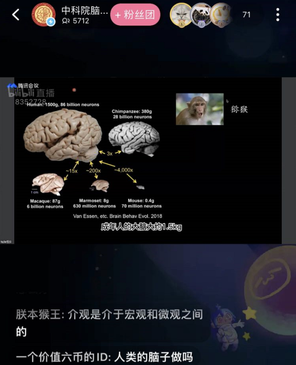 腦智卓越中心在騰訊會議、視頻號官方賬號“腦科學與智能技術”、B站官方賬號“中科院腦智卓越中心”三個平臺同時開設直播間,為廣大青少年提供了240分鐘的科普講座,孫強研究員、溫云卿副研究等11名科研人員將晦澀嚴謹的專業術語通過淺顯易懂、生動有趣、充滿生活氣息的的解說,使科學知識恰到好處地呈現給青少年,充分展現“前沿科技”和“身邊科學”背后的科學原理。與中心長期保持科普合作的松江區、徐匯區,兩天共發動近2.4萬名中小學生在線觀看此次“腦智擘未來系列科普直播課”。直播課由腦智卓越中心副主任王佐仁研究員擔任主持人,他和其他科普志愿者,在海量飛速滾動的彈幕和聊天框內搜集青少年們的提問,并讓演講者及時作出解答,滿足了廣大青少年對科學的好奇心。