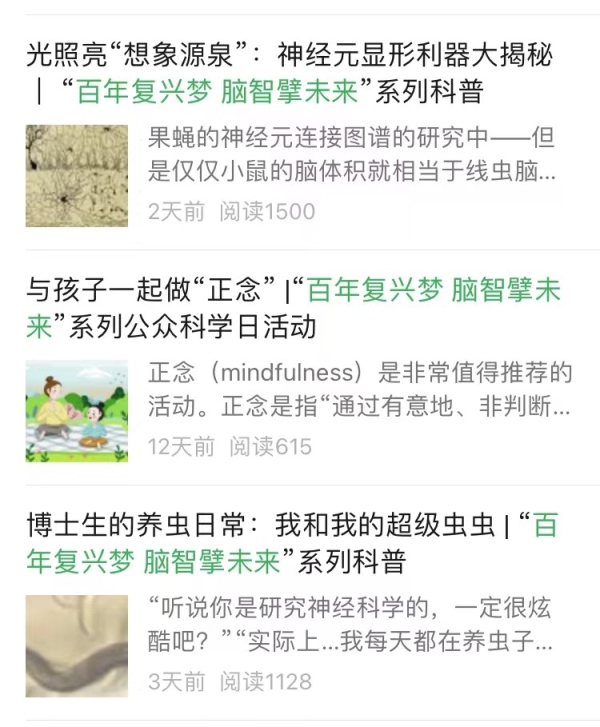 腦智卓越中心充分發揮科普資源優勢,通過“光照亮想象源泉” “博士生的養蟲日常” “與孩子一起做正念”等科普文章激發公眾對科學的熱愛,用實際行動詮釋“讓科學走進公眾,讓公眾愛上科學”。