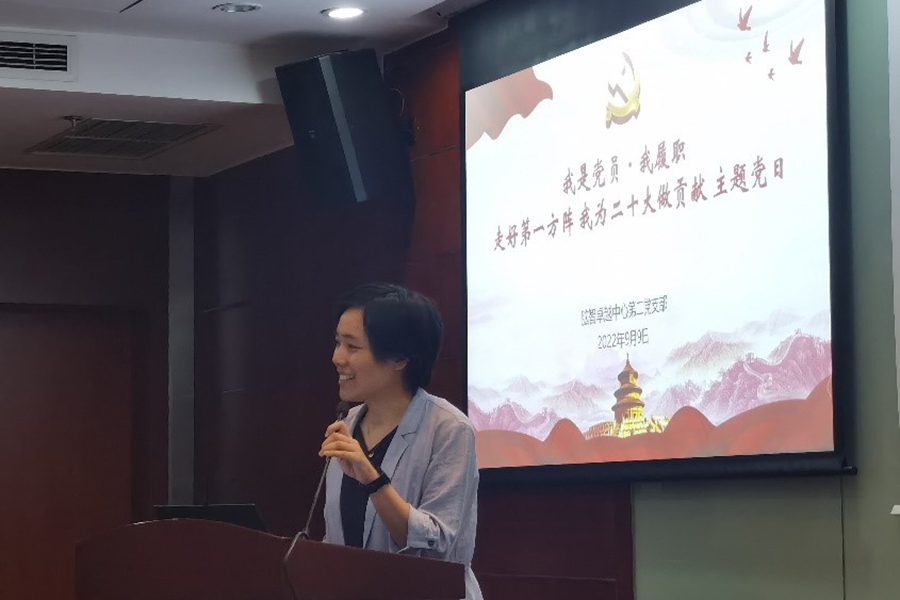 2022年9月9日下午,腦智中心第二黨支部舉辦“我是黨員·我履職 走好第一方陣 我為二十大做貢獻”主題黨日活動,支部書記竺淑佳研究員主持本次會議。?