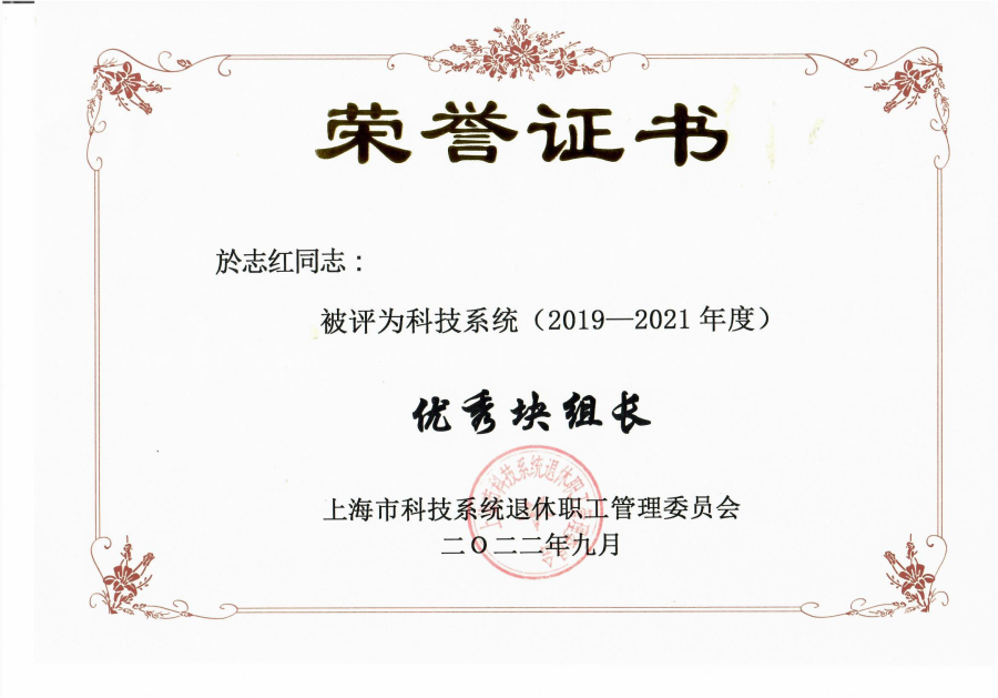 2021年,腦智卓越中心離退休黨支部分別獲得“中科院上海分院先進基層黨組織”、“上海市科技系統(tǒng)先進基層黨組織”等榮譽稱號,支部黨員莊云詩榮獲上海市科技系統(tǒng)第六屆“老有所為”先進個人和上海市科技系統(tǒng)離退休干部黨員模范典型,以上這些榮譽的取得與於志紅同志的辛勤工作密不可分,她在離退休黨支部建設(shè)上投入了大量的精力,以黨建工作帶動退管工作,發(fā)揮離退休黨員自我組織、自我管理、自我服務(wù)的精神,鼓勵退休黨員與困難退休職工“一對一”結(jié)對,做到精準服務(wù)。同時積極推動離退休黨支部與職工、學生黨支部共建,為離退休黨員退休不褪色,離崗不離黨,主動融入單位建設(shè)做了有益的嘗試。