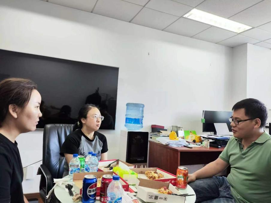 支部黨員、研究組長劉真與支部黨員在辦公室面對面交流