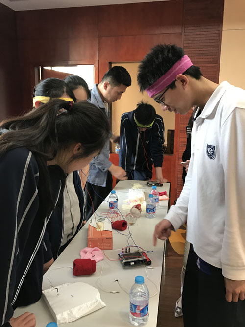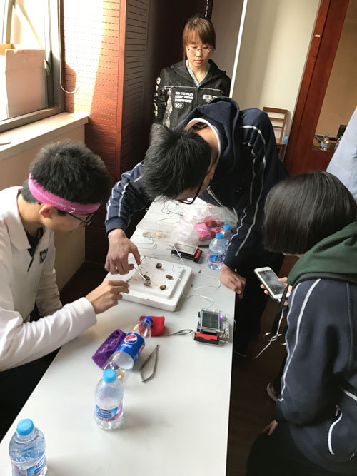 “電刺激蟑螂腿跳舞”的實驗更讓同學們欲罷不能。在好奇心的驅使下,同學們大膽抓起平時讓人有些望而卻步的蟑螂,在相互配合中,一步步學習解剖蟑螂、操縱儀器、控制音頻,最終,實驗在蟑螂腿“聞歌起舞”時達到了高潮,同學們成功觀察到了蟑螂腿的舞蹈,也因此證實了神經元是通過電信號來傳遞信息的事實。