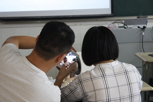 感知覺組劉志勇、顧勇、龔能詳細講述了聽覺系統(tǒng)發(fā)育與再生的機制、動物導航的神經(jīng)機制,以及非人靈長類動物模型在腦科學研究領域發(fā)揮的重要作用,其中猴子自我意識的視頻逗樂了現(xiàn)場所有人。科普志愿者讓廣大學生通過人體實驗親自感受主視眼、盲點、視覺穩(wěn)定性等科學概念,通過視覺運動的錯覺、食物味道感知、身體平衡控制、信息的編碼與解碼、腦功能測試等趣味小實驗,來強化學到的神經(jīng)科學知識。