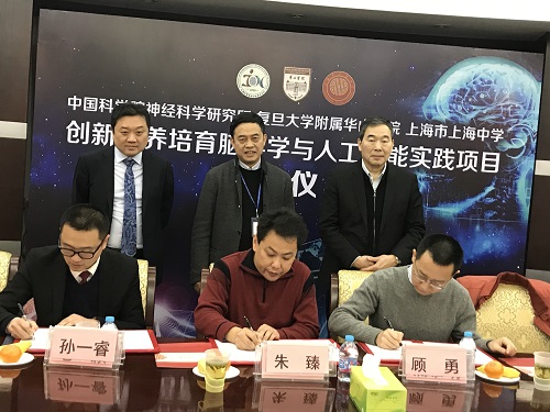 12月25日下午,中國(guó)科學(xué)院神經(jīng)科學(xué)研究所,復(fù)旦大學(xué)附屬華山醫(yī)院與上海市上海中學(xué)共同舉行“創(chuàng)新素養(yǎng)培育腦科學(xué)與人工智能實(shí)踐項(xiàng)目”簽約及揭牌儀式。中國(guó)科學(xué)院神經(jīng)科學(xué)研究所蒲慕明所長(zhǎng)、復(fù)旦大學(xué)附屬華山醫(yī)院毛穎副院長(zhǎng)、上海中學(xué)馮志剛校長(zhǎng)共同見證了項(xiàng)目簽約并揭牌。