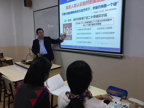 “創(chuàng)新素養(yǎng)培育腦科學(xué)與人工智能實(shí)踐項(xiàng)目”包含了實(shí)驗(yàn)室建設(shè)和配套課程教授。在中國(guó)科學(xué)院神經(jīng)科學(xué)研究所、復(fù)旦大學(xué)附屬華山醫(yī)院、中國(guó)科學(xué)院自動(dòng)化研究所協(xié)助下,上海中學(xué)已初步建立腦科學(xué)與人工智能創(chuàng)新實(shí)驗(yàn)中心以及配套課程。2018年9月至12月,面向高中一年級(jí)學(xué)生開設(shè)了“腦科學(xué)與人工智能”專門課程,“腦科學(xué)與智能技術(shù)”實(shí)驗(yàn)組課程。神經(jīng)所和自動(dòng)化所先后安排三十多名研究員前往上海中學(xué)授課,指導(dǎo)實(shí)驗(yàn)室建設(shè),并安排十多名研究生指導(dǎo)學(xué)生開展學(xué)習(xí)記憶、多感覺(jué)整合、動(dòng)物情緒調(diào)控、遙控動(dòng)物、腦機(jī)接口、錯(cuò)覺(jué)等方面的趣味實(shí)驗(yàn)。