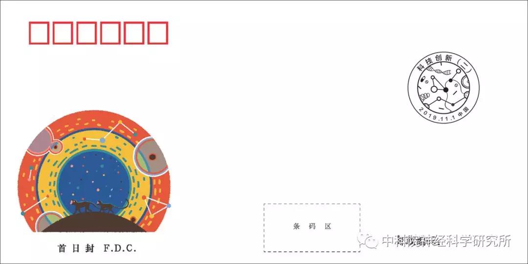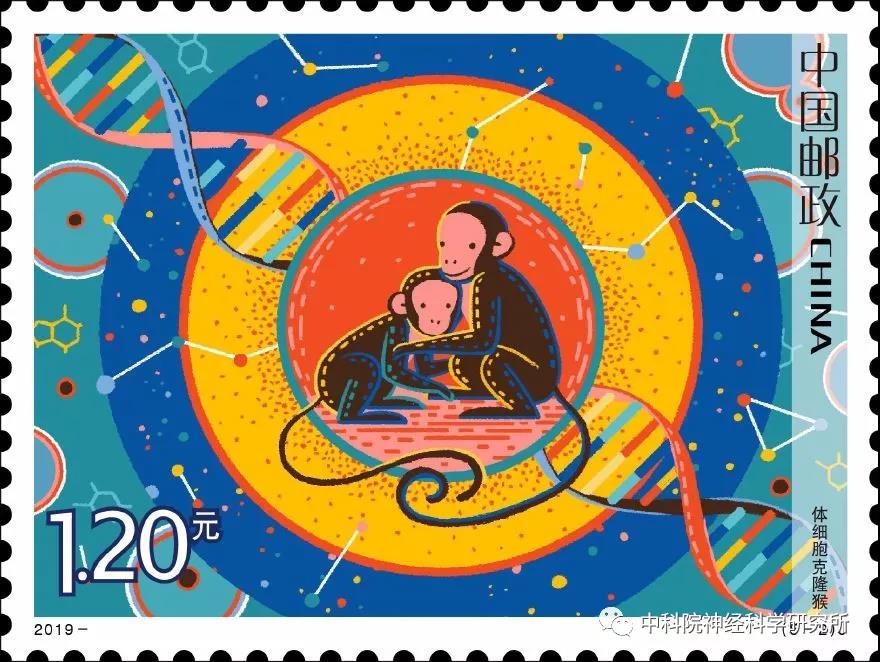 右上角:《體細胞克隆猴》彩色郵資機戳