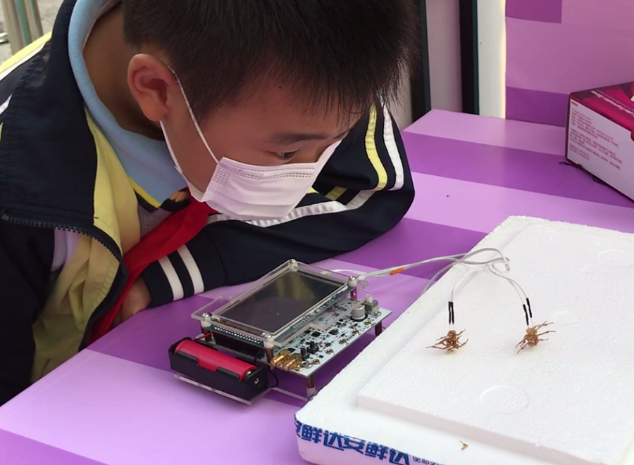 當孩子們看到已經(jīng)死亡三小時的蟑螂腿還能隨著音樂有節(jié)奏地“跳舞”時,發(fā)出了陣陣驚呼聲!