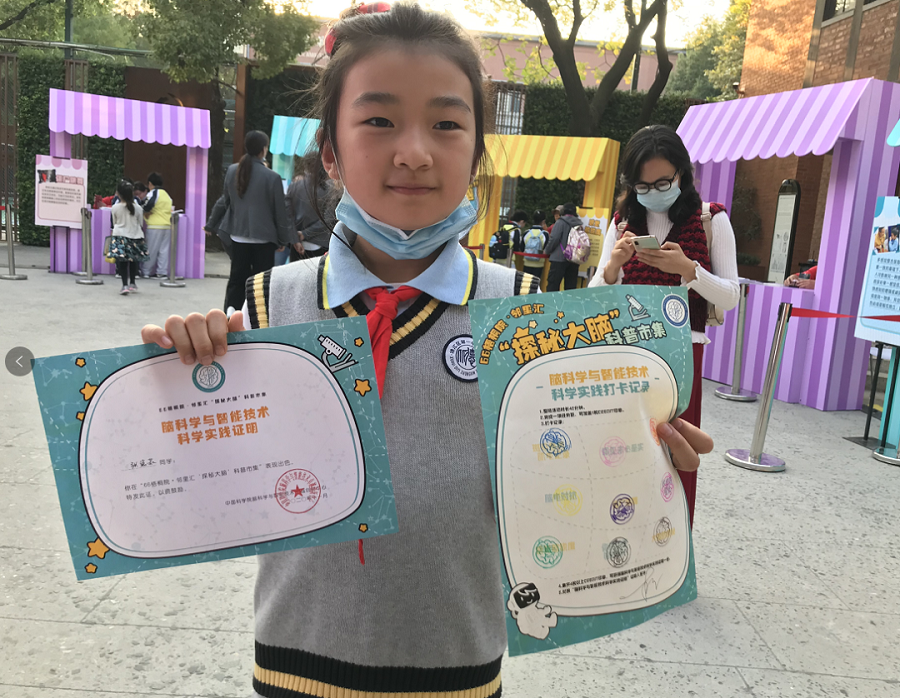 此次科普市集活動為中國科學院第三屆科學節(jié)計劃中的一部分,現(xiàn)場可領(lǐng)取科學實踐打卡記錄,集齊4枚CEBSIT印章,即可兌換《腦科學與智能技術(shù)科學實踐證明》,這一舉措有效提升了青少年的科學實踐熱情。