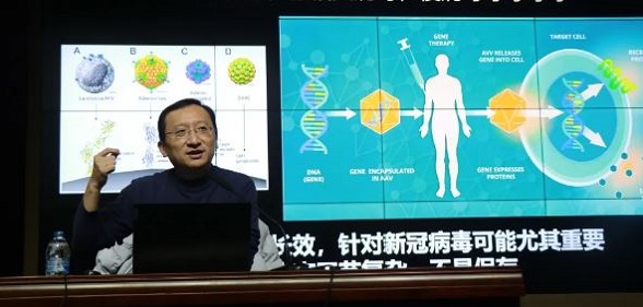 仇子龍首先以特殊之年的新冠疫情談起,以“基因——mRNA——蛋白質”為主線,向同學們生動有趣的講述了基因工程生產的藥物,從胰島素到抗體藥。又通過疫苗研發的“前世與今生”,介紹進入臨床三期的各類新冠疫苗,介紹了病毒是人類可怕的敵人,也有些病毒正被“馴化”為人類的朋友,作為疫苗或藥物的載體等。仇子龍認為,隨著生命科學的蓬勃發展,藥物正在從化合物,蛋白質到DNA不斷演化,同學們也要客觀看待病毒與人類的關系,在病毒和疫情面前秉持科學嚴謹的態度,相信科學,勇于創新。