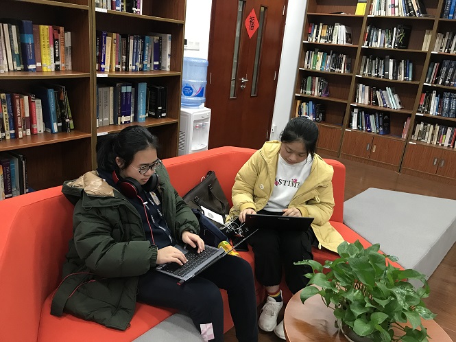 臨近返程時間,部分提前與導師結束面談的同學到達閱覽室等候集合。受到腦智卓越中心濃郁的學術氛圍感染,他們也自覺地打開電腦開始完善自己的開題報告,還有部分同學在閱覽室翻閱起腦科學相關專業書籍,遲遲舍不得離去。