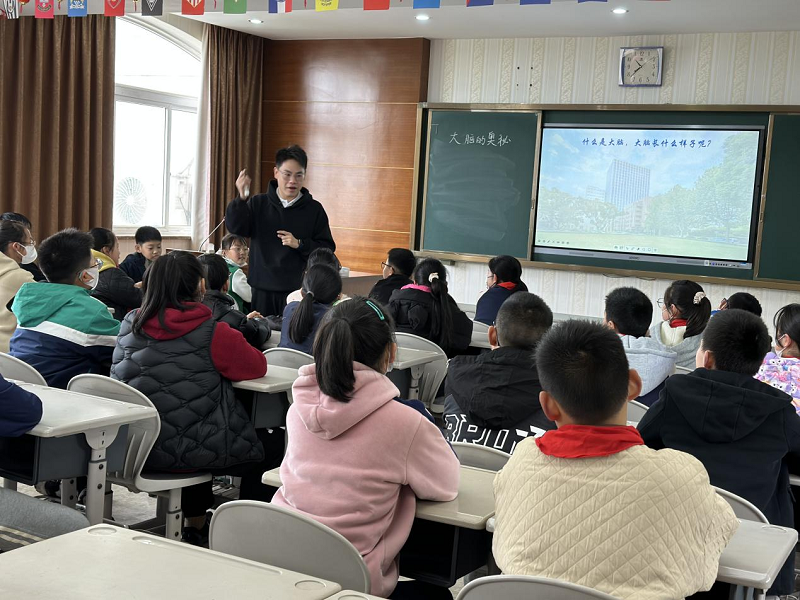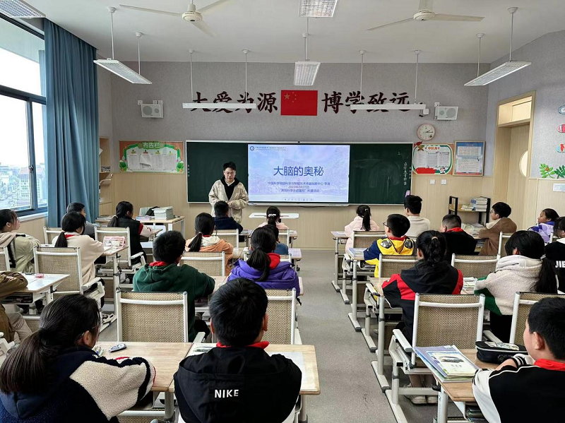 中心研究生會(huì)主席李濤為春江中心小學(xué)和大源鎮(zhèn)中心小學(xué)做了題為《大腦的奧秘》主題科普?qǐng)?bào)告。他為小學(xué)生介紹了大腦的主要結(jié)構(gòu)與功能,介紹了情緒的分類、小鼠抑郁模型的構(gòu)建等科學(xué)知識(shí)。同學(xué)們聽得津津有味,并進(jìn)行了有趣的互動(dòng)。同學(xué)們紛紛表示科學(xué)課堂別出心裁,對(duì)科學(xué)有了更大的興趣,部分同學(xué)表示今后要努力成為一名科學(xué)家。