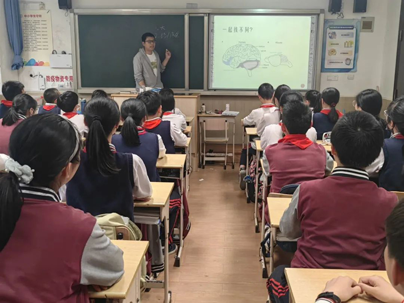 黎江春暉:今天的校會課上,中科院的焦卓磊博士給我們上了一節(jié)課:《神奇的下丘腦》,在課上,老師給我們看了人腦和鼠腦的圖片,給我們講了人腦和鼠腦的不同以及人類大腦的結(jié)構(gòu)。講下丘腦時,老師分別給我們講了下丘腦的作用,下丘腦的位置和下丘腦出問題所帶來的后果。在課堂上,老師的說辭加上他精心準(zhǔn)備的教案,讓同學(xué)們被深深吸引,并積極與老師互動。課程的最后,同學(xué)們向老師提出了很多關(guān)于腦科學(xué)的問題,老師也都耐心地為我們一一解答。這節(jié)課讓我們懂得了許多知識,我認(rèn)為這是一次難忘的科普活動。