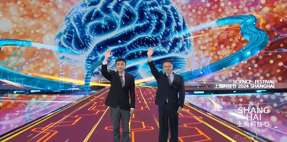 ????5月18日,從事腦疾病研究的腦智卓越中心副主任(主持工作)師詠勇和專注腦功能研究的研究組組長徐春,應(yīng)邀參加上海科技節(jié)“元宇宙科學(xué)紅毯”,借助AIGC技術(shù),穿梭現(xiàn)實與“大腦”元宇宙。東方衛(wèi)視、上海電視臺等媒體通過直播和報道,為600多萬名公眾呈現(xiàn)了絢麗的大腦畫面,生動形象地向社會展示了大腦的復(fù)雜和神秘、科學(xué)中最大的謎團、科學(xué)家們最為關(guān)注的科研領(lǐng)域。