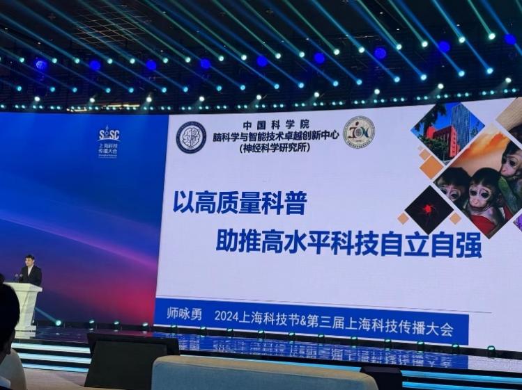 ????師詠勇在第三屆上海科技傳播大會做主題為“以高質(zhì)量科普助推高水平科技自立自強”的主旨報告,分享了腦智卓越中心在蒲慕明院士的帶領(lǐng)下近二十年致力于科普實踐活動的光榮傳統(tǒng),展示了中心發(fā)揮腦科學(xué)專業(yè)優(yōu)勢、緊貼科研創(chuàng)新一線、兼顧“信”“達”“雅”打造腦科學(xué)普及模式。希望社會各界心系“國家事”、肩扛“國家責(zé)”,加大支持和參與科普事業(yè)的力度,為實現(xiàn)高水平科技自立自強、為建設(shè)具有國際影響力的科技創(chuàng)新中心貢獻自己的力量。