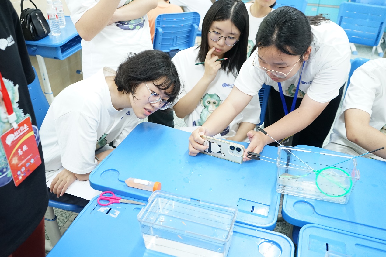 在整個(gè)科普夏令營活動中,205名營員分為4個(gè)組,每個(gè)組下設(shè)3個(gè)小班,圍繞腦功能、腦健康、腦機(jī)接口、專題報(bào)告四個(gè)方面開展專題講座、趣味科普小實(shí)驗(yàn),向同學(xué)們展示腦科學(xué)的奧秘,啟發(fā)同學(xué)們對科學(xué)探索的興趣。系列實(shí)驗(yàn)由腦智卓越中心科普協(xié)會原創(chuàng)制作而成,實(shí)驗(yàn)充分結(jié)合青少年對社交化、娛樂化、游戲化等科普內(nèi)容的偏好,使得曾經(jīng)“高冷”的專業(yè)操作,以更多元、更新潮的方式綻放科學(xué)的魅力。夏令營全程,科普志愿者們鼓勵(lì)小營員們提問,通過潛移默化建立他們對科學(xué)的熱忱、對自然的好奇心,以及對科學(xué)和非科學(xué)事物做判斷的能力。