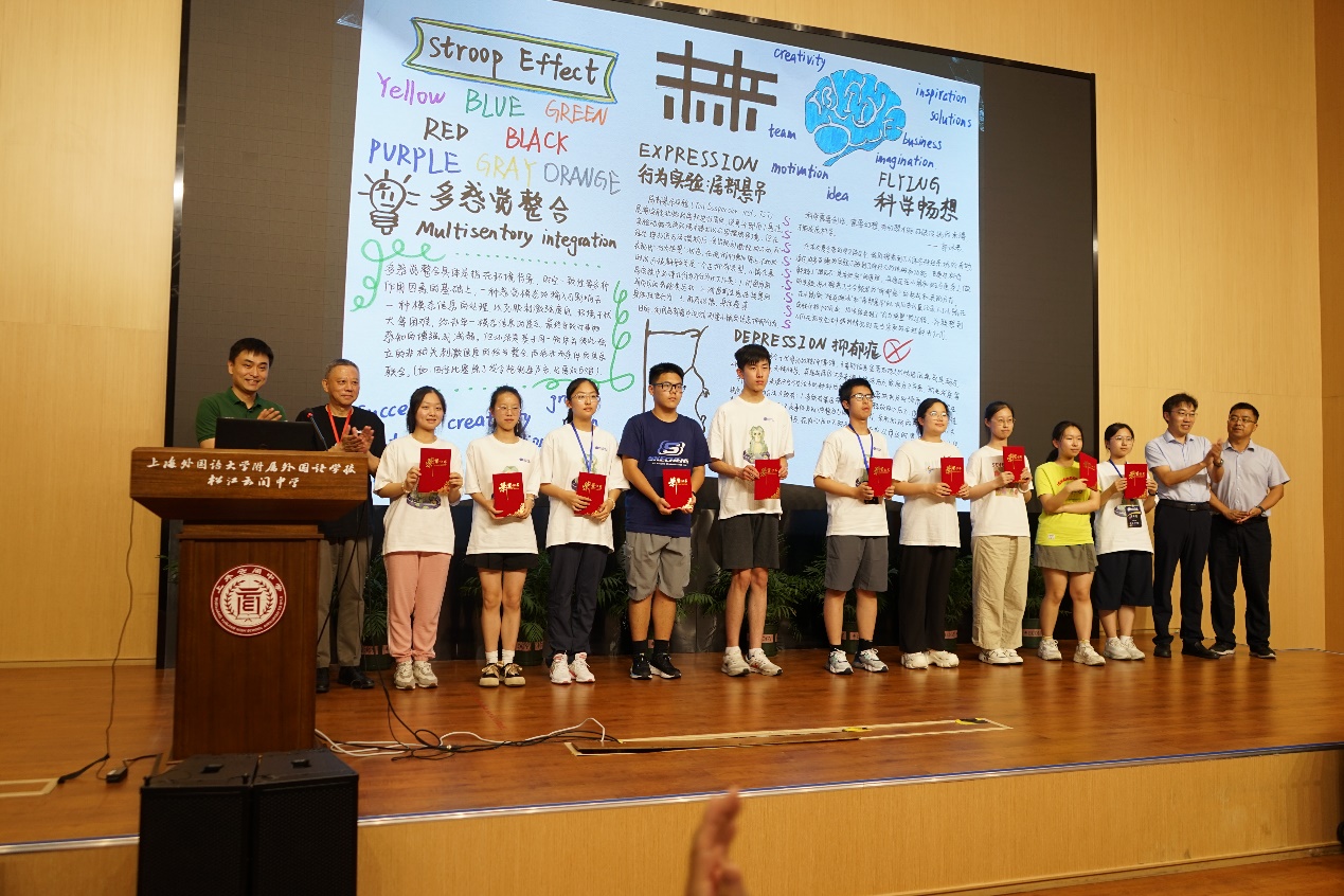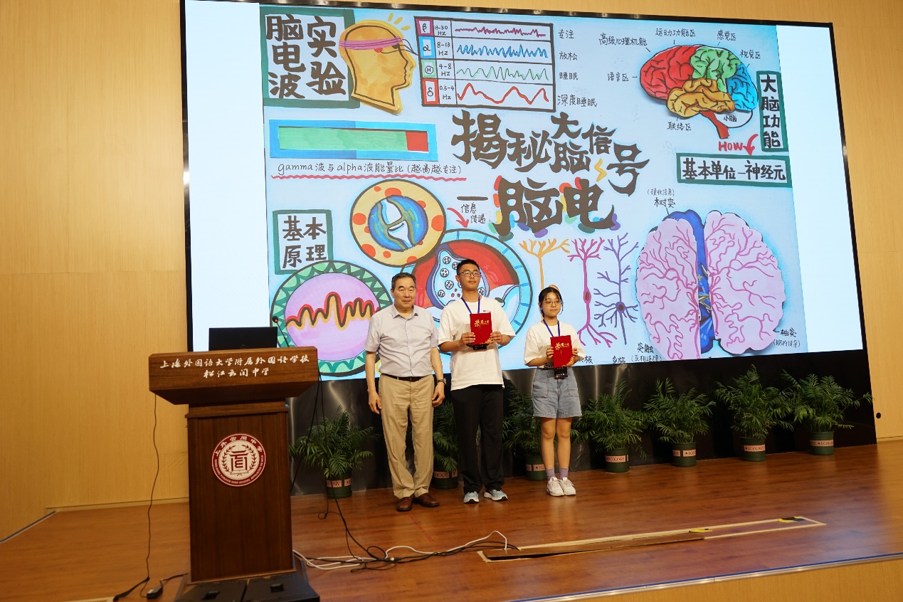 通過培訓(xùn),營員們圍繞所學(xué)內(nèi)容、實(shí)踐感悟、科研夢想,制作了科學(xué)小報(bào),并且在班級里進(jìn)行了展演和交流匯報(bào),審核通過者獲頒科學(xué)實(shí)踐證明。閉營儀式上,王以政院士、師詠勇研究員、松江區(qū)教育局副局長朱永、章小金給十大優(yōu)秀營員(吳桂欣、李子祺、章徐諾、王夢瑄、陸佳琪、張皓然、張軒愷、莫熙慧、朱紫千、包佳露)頒發(fā)了證書,蒲慕明院士給兩大杰出營員(趙聆秀、張栩平)頒發(fā)了證書。