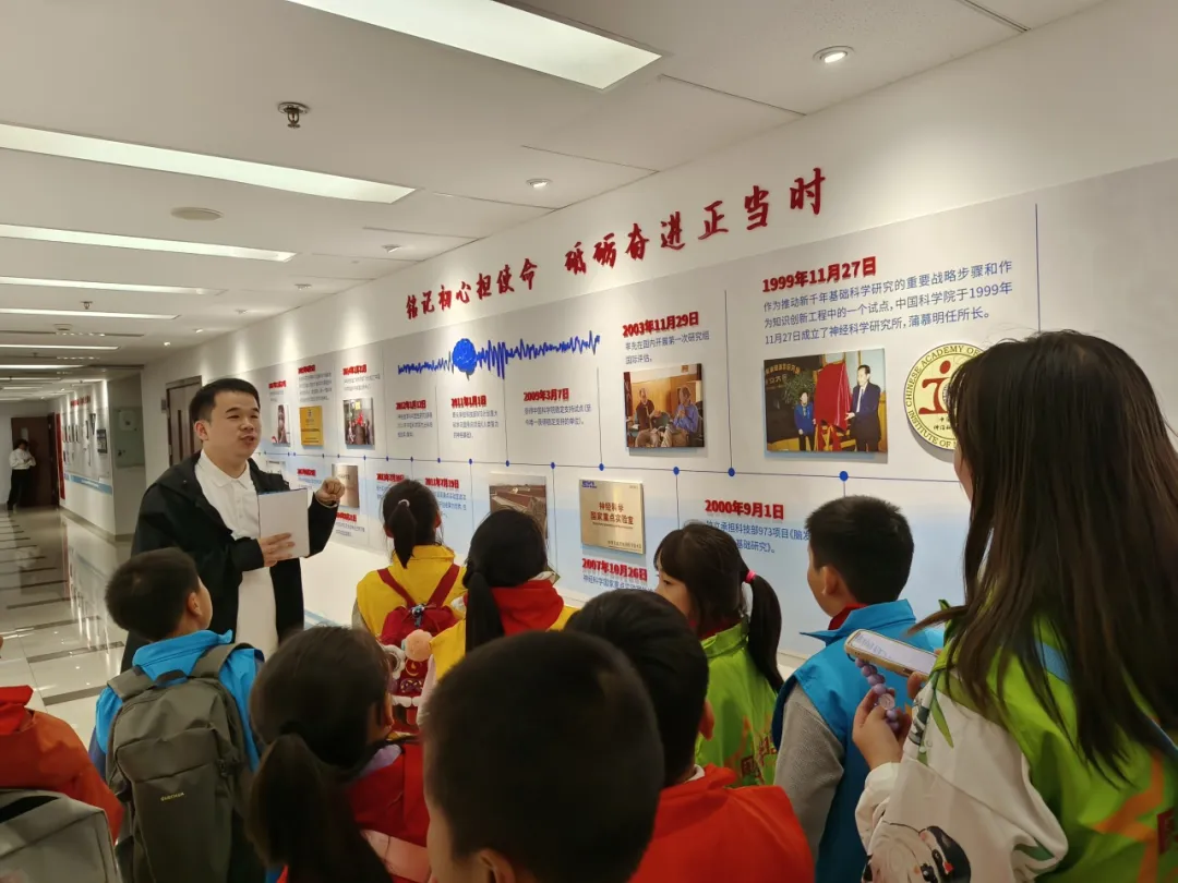 隨后,隊員們在校外輔導員的帶領下參訪了中國科學院腦智卓越中心,了解了中心的發展歷程,以及科學家們在腦科學領域所取得的輝煌成就。同學們聽得入神,眼中閃爍著對知識的渴望和對科學家們的敬佩之情。這里的每一個展示、每一張照片,都像是一把把解開自我之謎的鑰匙,引領同學們去發現大腦的無盡奧秘。