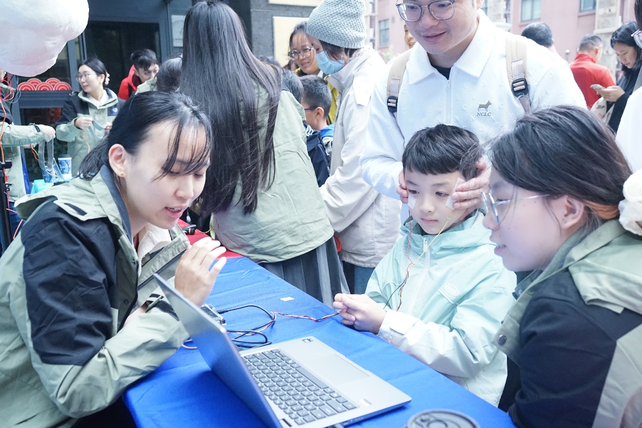11月8日,一場別開生面的“腦智擘未來”科普市集在腦智卓越中心岳陽園區開啟。“力量召喚閃電”實驗讓參與者通過手臂發力觸發“云朵閃電”,直觀感受肌電信號的產生與傳導;“腦電對抗”與“腦電協作”通過測量注意力與腦波協同,以競賽與協作方式揭示大腦在不同認知狀態下的活動模式;“眼控小車”項目則借助眼動信號控制車輛行進,展現人機交互的前沿應用。這些互動項目將高深的神經信號機制轉化為趣味體驗,讓公眾在動手參與中走近科學,領悟探索的魅力,科學由此實現了從“高大上”到“接地氣”的轉化,從書本和實驗室走向公眾,構建起公眾主動參與的互動生態,“科學離我很近”成為現場最直觀的感受。