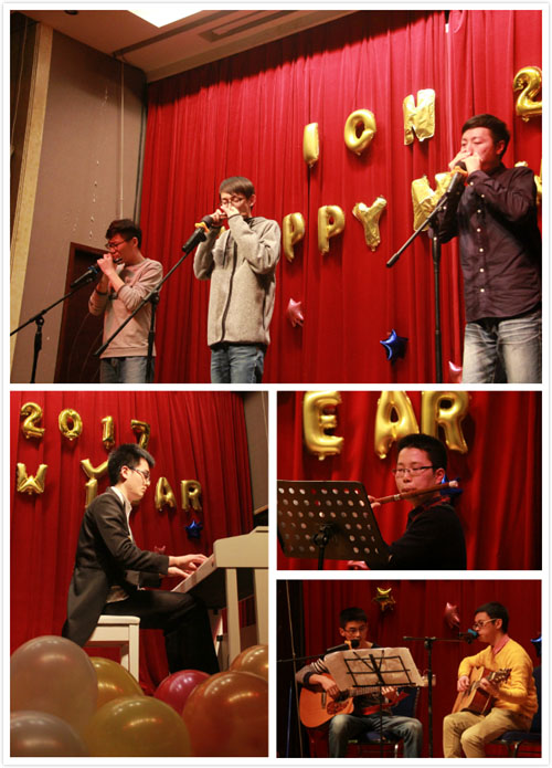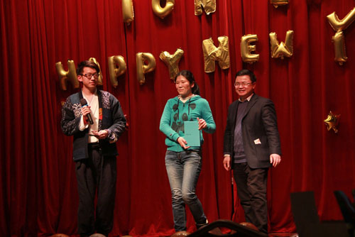 開場前,神經(jīng)所所長蒲慕明院士為獲得2016年年會的6位優(yōu)秀報告人頒發(fā)了證書和獎品。聯(lián)歡會在熱情洋溢、青春活力的舞蹈《Watch Me Work》和全場師生的熱情歡呼聲中拉開了序幕;一群平均年齡70多歲、精神矍鑠的老人應邀為大家?guī)硐矚庋笱蟮臍g樂腰鼓,掀起了全場的一波高潮;慷慨激昂的《改變自己》讓大家熱血沸騰起來;充滿濃郁江南韻味的長笛《姑蘇行》,讓大家仿佛漫步在清秀恬美的江南水鄉(xiāng);別出心裁的無厘頭《比wu招親》充分體現(xiàn)了90后的多才多藝;自編自導的小品《One Day in Lab》深刻演繹了神經(jīng)所的科研生活;游戲過程中科學領域的模式動物被師生們演繹得惟妙惟肖、花樣百出;新進所的6位PI自編的歌詞中對科研人生酸甜苦辣的描述不斷激起大家的共鳴;行政人員和管家們精心排練的俄羅斯舞蹈《春天的華爾茲》,清麗脫俗、婀娜多姿的舞步,引來掌聲陣陣,叫好連連,將晚會的氣氛推向了又一高潮;深情款款的《告白氣球》和現(xiàn)場的真情流露,讓觀眾已然分不清戲的真假;創(chuàng)意新穎的相聲《鈴鐺譜》,通過輕松幽默的語言,讓大家腦補了各種鈴鐺的名字和獨特意義,增長了不少見識;聯(lián)歡會在充滿青春朝氣的大合唱中劃下完美的句號。