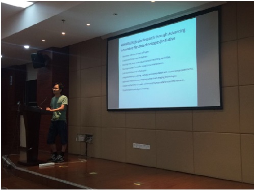 活動中,梁智鋒以“Interdisciplinary approaches of neuroscience:science and career development”為主題,與大家分享了他的故事與見解。他認為科技進步需要依靠技術進步,他將科學研究的阻礙比作盲人摸象,帶領大家展望在技術進步影響科技發展速度的前提下科學研究的發展前景。在提問討論環節,大家圍繞小動物核磁成像的現狀與發展,與他探討了核磁成像的技術限制、突破方向以及一系列就業問題。