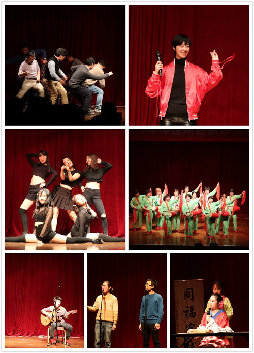 開場前,首先播放了新年祝福視頻中,蒲慕明所長、王燕書記以及PI、職工代表都表達了對新的一年美好祝愿與期望。隨后,活力四射的舞蹈節目《solo&ooh ooh baby》拉開了整場慶典的序幕,激情的舞姿和靈動的旋律在大會立刻把歡愉的氣氛帶向了高潮。舞蹈之后,主持人們閃亮登臺,為大家帶來了新年的祝福,杜久林副所長代表所黨政工為大家致新年賀辭。節目《那些花兒》中,吉他彈奏和優美歌聲余音繞梁,喚起了大家對美好青春的無限回憶;相聲《學攝影》則表現出神經所學生能歌能舞也能文,巧妙構思的劇本不斷帶來全場一陣又一陣的歡笑。第一次互動帶來了考驗反應速度的《搶凳子》游戲,受邀上臺參加游戲的老師們身手敏捷,將現場氛圍推向高潮。激動人心的抽獎過后,是古美街道平吉社區的阿姨們的手鼓演出《南泥灣》,響亮的鼓點和輕盈的舞姿贏得滿堂喝彩;別出心裁的小品《武林外傳新編》將經典劇集中的經典人物演繹得活靈活現,為大家帶來了不一樣的體驗;新PI葉錚老師攜課題組全體成員帶來了歌舞《小蘋果》,搞怪的造型和躍動的節奏將現場氣氛再一次推向高潮。互動游戲《奪寶奇兵》將熱烈的氣氛延續了下去,參與者們在場內矯健穿行,不斷完成了一個又一個尋寶任務。游戲過后,研究組管家代表們不甘示弱,帶來了精彩紛呈的歌曲串燒;代代傳承的影子戲《猴戲》以特別的形式展現出了神經所學生們在學習生活中的酸甜苦辣,寄托了對未來的美好期望。民樂合奏《回夢游仙》帶來了古箏、二胡、長笛的美妙組合,婉轉悠揚的旋律,令觀眾們沉醉其中;歌曲《翅膀&I believe I can fly》則用富含力量的旋律振奮了大家,情緒飽滿的演唱令觀眾紛紛動容。受歡迎的最后一個互動游戲《聽歌識曲》再次讓觀眾們投入其中,并在隨后帶來了激動人心的特等獎抽取。最后,小提琴和電子琴合奏的一曲《memory》,為迎新聯歡會劃上了完美的句號!