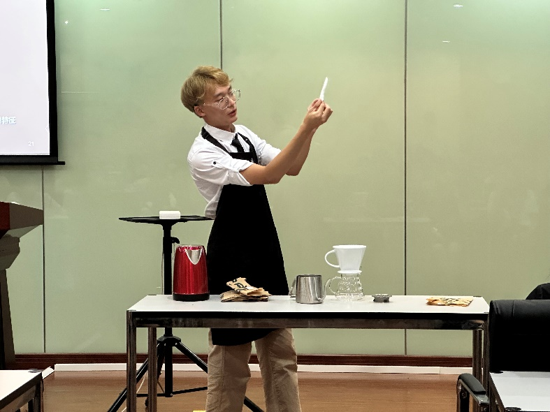 活動安排了手沖咖啡的實操培訓,手法嫻熟的咖啡師演示了咖啡的完整沖泡過程和制作技藝,講解制作要領。演練后,大家都躍躍欲試,咖啡師在一旁耐心指導,體驗者用準確的溫度、恰當的流速和講究的手法,沖煮出一杯杯完美風味的咖啡。