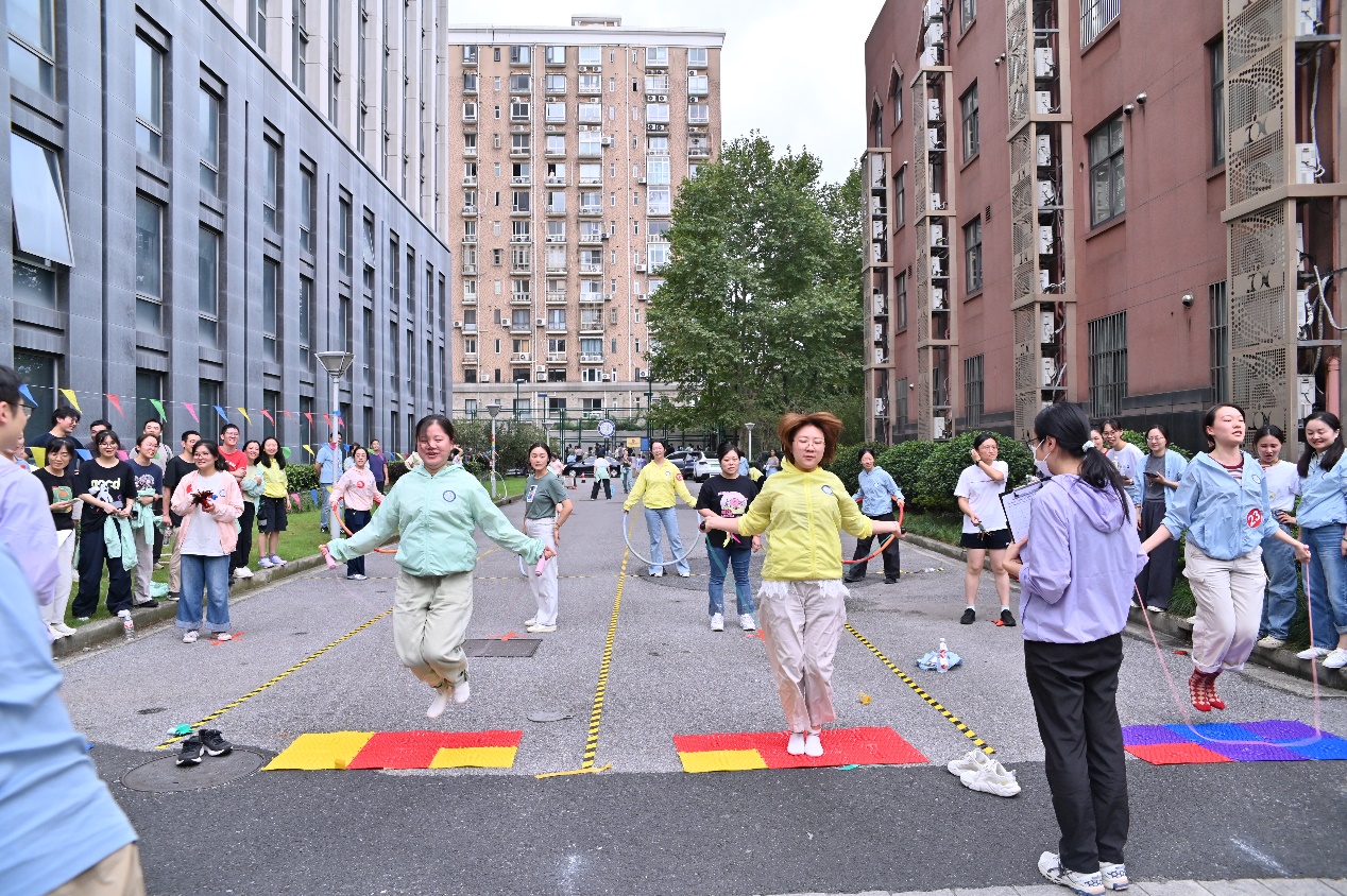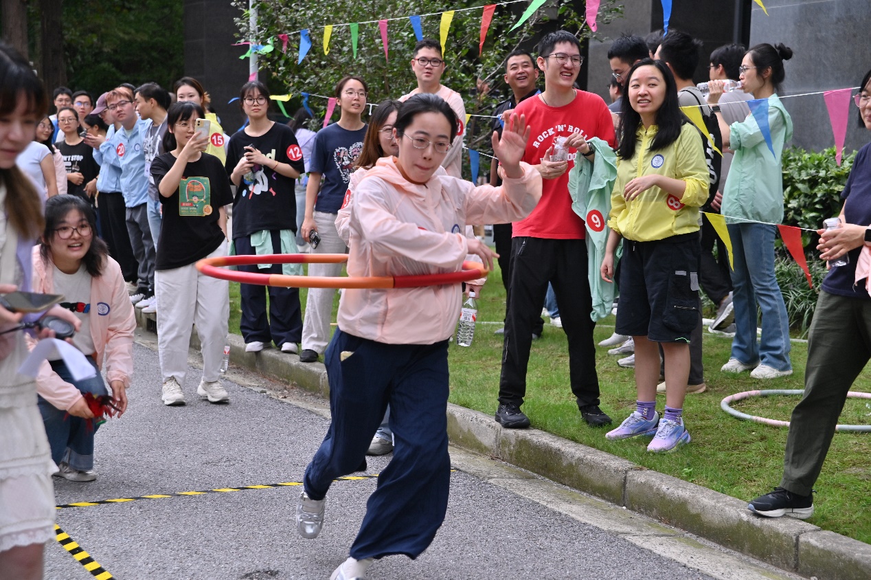 趣味接力比賽環(huán)節(jié)包含俯臥撐、指壓板跳繩、踢毽子、呼啦圈前進和投壺五項挑戰(zhàn),將趣味性、競技性、協(xié)作性巧妙結(jié)合。選手們意氣風(fēng)發(fā),各顯神通,以速度拼距離,幾乎每支隊伍都在項目里拼出了新高度。