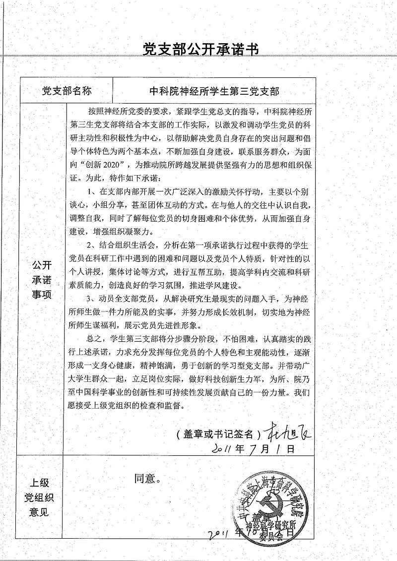 黨支部公開承諾書