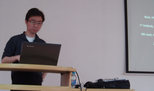 這次課程活動(dòng)從4月6日開始,持續(xù)到5月5日,于每周六下午進(jìn)行,共舉辦了4期、24個(gè)專題,以講解技術(shù)為主、以領(lǐng)會(huì)理論為核心、以實(shí)踐應(yīng)用為目的,具體的內(nèi)容既涵蓋了最基本的細(xì)胞培養(yǎng)、免疫組化,也包括常用的分子克隆、生化分析、電生理記錄、遺傳操作和圖像采集處理,還詳細(xì)介紹了各種重要的模式生物如果蠅、斑馬魚、線蟲以及靈長類動(dòng)物的行為學(xué)和生理生化分析方法,涉及了分子與細(xì)胞神經(jīng)科學(xué)、神經(jīng)系統(tǒng)發(fā)育、神經(jīng)系統(tǒng)疾病、計(jì)算神經(jīng)科學(xué)和認(rèn)知神經(jīng)生物學(xué)等領(lǐng)域的重要實(shí)驗(yàn)技術(shù)和方法。每個(gè)報(bào)告者都精心準(zhǔn)備了簡潔的PowerPoint,深入淺出、風(fēng)趣生動(dòng)、淺顯易懂地講解了各個(gè)實(shí)驗(yàn)技術(shù)的基本原理、相關(guān)設(shè)備和操作方法,還毫無保留地分享了在實(shí)際應(yīng)用過程中的個(gè)人技巧、心得體會(huì)和注意事項(xiàng),講課的過程中還與大家還進(jìn)行了熱火朝天的討論和互動(dòng)交流,表現(xiàn)出了高度的責(zé)任感和極大的奉獻(xiàn)精神。大家可到http://m.hangyuhb.com/cxwh/zywj.asp下載視頻,如果在實(shí)驗(yàn)中遇到具體問題,可進(jìn)一步請教報(bào)告者。