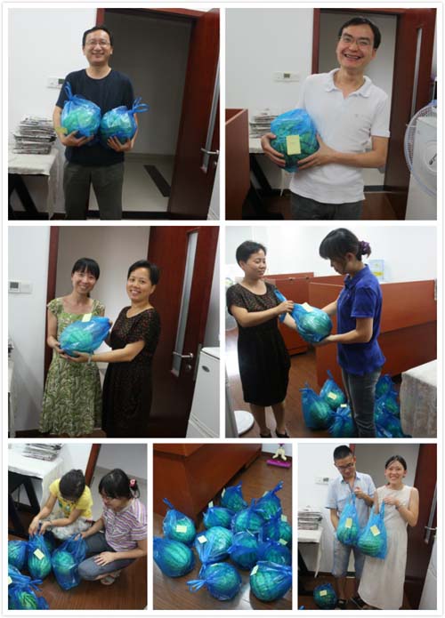 五月中旬,在生科院工會組織下,我所部分職工子女參加了“迎六一綠色科普親子活動”,在松江的試驗田里,小朋友們親手種下了一棵棵的西瓜秧苗。之后,很多孩子經常在家里念叨西瓜苗長大了嗎?什么時候結瓜呀?在孩子們的期盼下,8月14日下午,孩子們終于等來了好消息,家長們開心地領取了孩子們的勞動果實,有的還特地與同事們分享了這份收獲的喜悅。