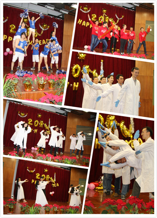 晚會在熱情洋溢、活力十足的舞蹈《All for one》和全場師生的熱情歡呼聲中拉開了序幕;蘇州非人靈長類平臺工作人員為大家帶來的手語舞蹈和敲鑼打鼓的三句半,掀起了全場熱潮;一曲動情的《感恩的心》唱出了大多數人的心聲;充滿古典韻味、唯美至極的民族樂器聯奏《雨碎江南》,征服了在場的每一位觀眾,空靈的曲調,讓大家完全沉浸其中,回味無窮;別出心裁的無厘頭《神劇串燒》充分體現了90后張揚的個性和非凡的青春;自編自導的歌舞劇《師兄叫我做實驗》深刻演繹了神經所的科研生活,科學領域的模式動物被刻畫得惟妙惟肖,歌詞中科研人生的酸甜苦辣不斷激起大家的共鳴;精彩的節目數不勝數,精彩一浪高過一浪,新進所的6名研究員穿上白大褂表演了整齊劃一的《千手觀音》,收獲掌聲連連,將晚會的氣氛推向了高潮;清麗脫俗、婀娜多姿的《愛的華爾茲》,歡快勁爆的流行歌曲《時代魔音》,點燃了現場全體師生的激情;創意新穎的《影子戲3》通過輕松幽默的語言,形象搞笑地演繹了意氣風發的研究員海外歸來創建、管理課題組的各種過程,體現了實驗室開創未來的信心和勇氣;整個晚會在青春朝氣的大合唱《陽光下奔跑的青春》中,畫下完美的句點。 工會還特別邀請了京劇票友來為聯歡會助興,《四郎探母》、《蕭何月下追韓信》兩則膾炙人口的經典唱段令全場連連叫好。