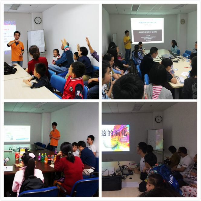 李昌林博士、邊文杰博士、唐??博士、陳浩山博士、李霄助理研究員分別為參觀者做了題為“疼痛的細胞和分子機制”、“什么造就了你,基因or經驗?”、“大腦的演化”、“帕金森離你我并不遠”、“轉基因猴獻身自閉癥研究”的科普講座,每個報告都反響熱烈,充分激發了學生們對腦科學的濃厚興趣,他們踴躍地提出自己的問題,神經所科普志愿者耐心地逐一給予了解答,現場互動氣氛十分活躍。