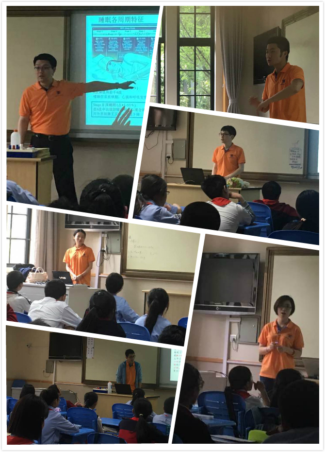5月20日下午,神經(jīng)所張洪鈞研究員、徐寧龍研究員、溫云卿副研究員、王飛、唐??、常思源、蔣昕、汪?_?[、焦卓磊、蔣夢萍、高鄭潤、周立等12位科普志愿者,前往市西初級中學,圍繞“睡眠與大腦功能”、“大腦如何聽見聲音”、“視覺魔術(shù)”、“腦的演化”、“長生與不老”、“生物的節(jié)律”、“感覺探秘”、“深度腦刺激”、“探索記憶的奧秘”、“水果的結(jié)構(gòu)”、“視覺錯覺”等主題,為初一年級12個班的學生們開設(shè)了12堂別開生面的科普講座,為大家普及腦神經(jīng)等方面的科學知識。