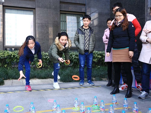 趣味運動包括套圈、慢騎、呼啦圈三種運動形式。套圈比賽中,由每個課題組選送若干個人上場競技,選手們認真準備、瞄準、投擲,現場趣味十足,大家仿佛又回到了美好的童年。