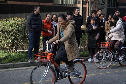 慢騎賽比賽車道設為8米長,2米寬,以堅持騎行時間且不犯規者為勝。隨著裁判的一聲令下,參賽選手沒有像離弦的箭般沖出起跑線,而是使出自己的看家本領讓自行車盡量慢之又慢。自行車有順從主人心意,穩穩定在那里的;有的在原地定了很多秒,可一不留神,車子又彎到線上犯了規的;最后潘萍萍、陳愛兵、張燈以騎行保持最長的時間奪得三甲。