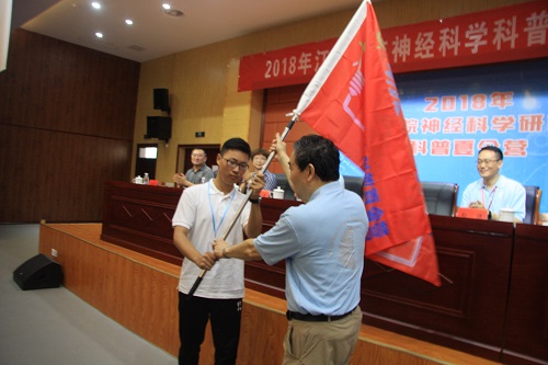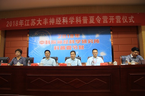 7月13日至15日,在神經所所長蒲慕明院士和黨委書記王燕的帶領下,神經所科普志愿者會同中科院上海分院、中科院生化細胞所、中科院自動化所、中科院水生所、中山醫院、上海中學等單位共45人赴江蘇大豐開展“2018年江蘇大豐科普夏令營”活動。來自大豐區的大豐中學、新豐中學、南陽中學的203名高一學生和200多名教師參加了此次夏令營。 13日上午的開營儀式上,蒲慕明向夏令營學生代表授營旗,孫強研究員作為科普志愿者代表發言。