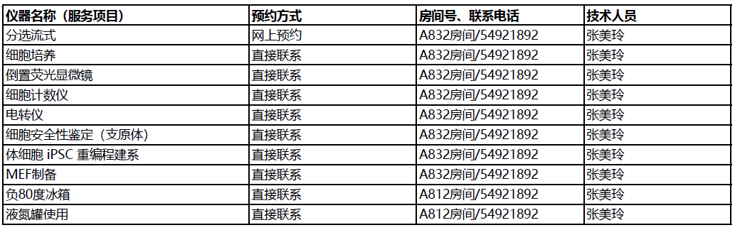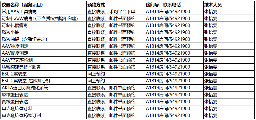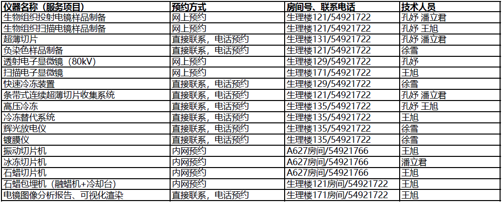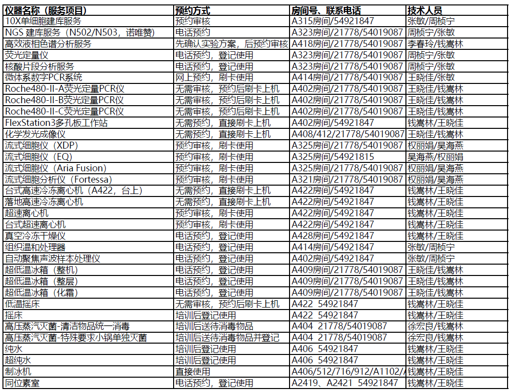 3. 各專業(yè)技術平臺可以提供的服務可能不包含在本表內,請與相關技術支持人員聯(lián)系查詢;