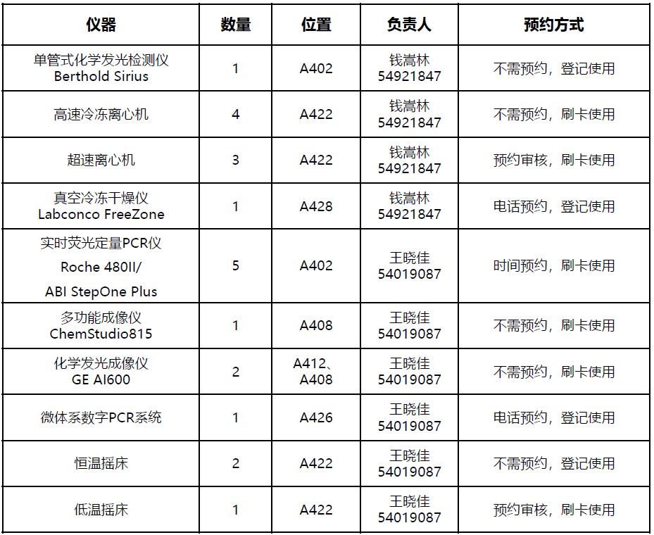 分子與細胞相關公用儀器的管理和維護,并定期進行儀器使用的指導和培訓。公用儀器包括高速及超速離心機、熒光定量PCR儀、微體系數字PCR系統、化學發光成像儀、化學發光檢測儀、酶標儀、真空冷凍干燥儀等。
