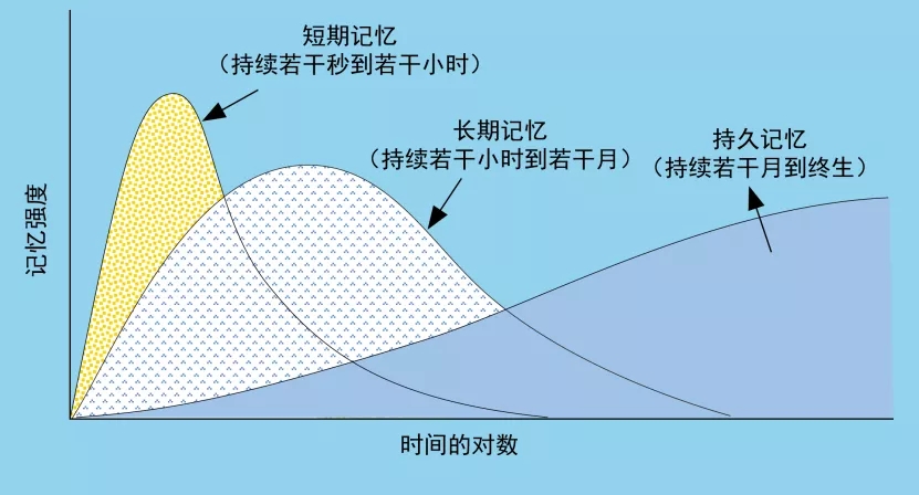 雖然陳述性記憶和非陳述性記憶從行為表現到內在機制都具有巨大的差異,但是它們都可以分為長期和短期記憶,并且規律驚人地一致,比如: